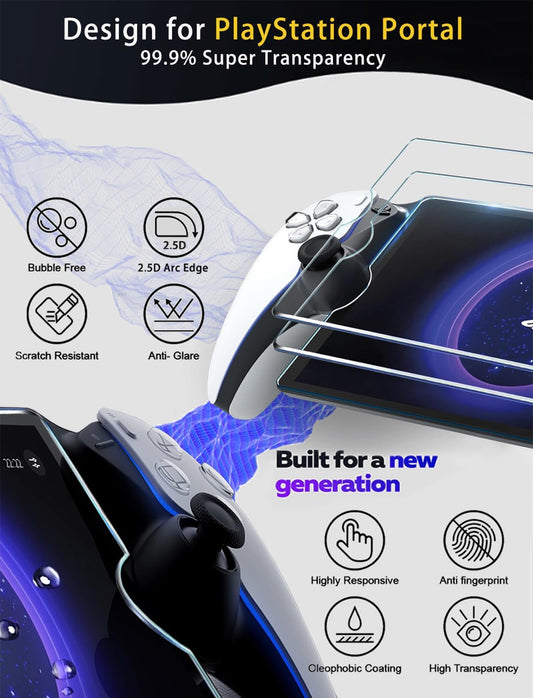 2 Pack Tempered Glass Screen Protector for Playstation Portal Remote Player - Transparent HD Clea...
